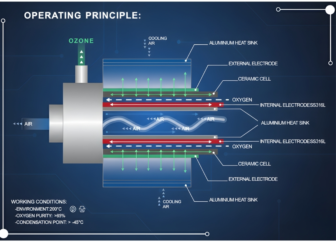 Ozone generators generate ozone (O₃) by creating high voltage between two piezoelectric plates. The ozone molecules then attach to pollutants in the air, breaking them down and purifying the atmosphere.sanitizing ozone generator